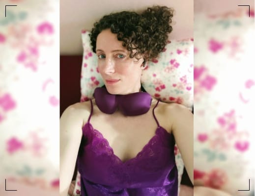 Now to find favored long fluffy cable-knit red socks first - a pleasant awareness of vascular pump-circulation thudding sensations reduced. Then in preparation for that med-tec loveliness which is my cervical traction collar, on goes a rose-hue cashmere half sweater buttoned atop sleepy silken camisole. "mmmm anschmiegsame Geschmeidigkeit ‡".