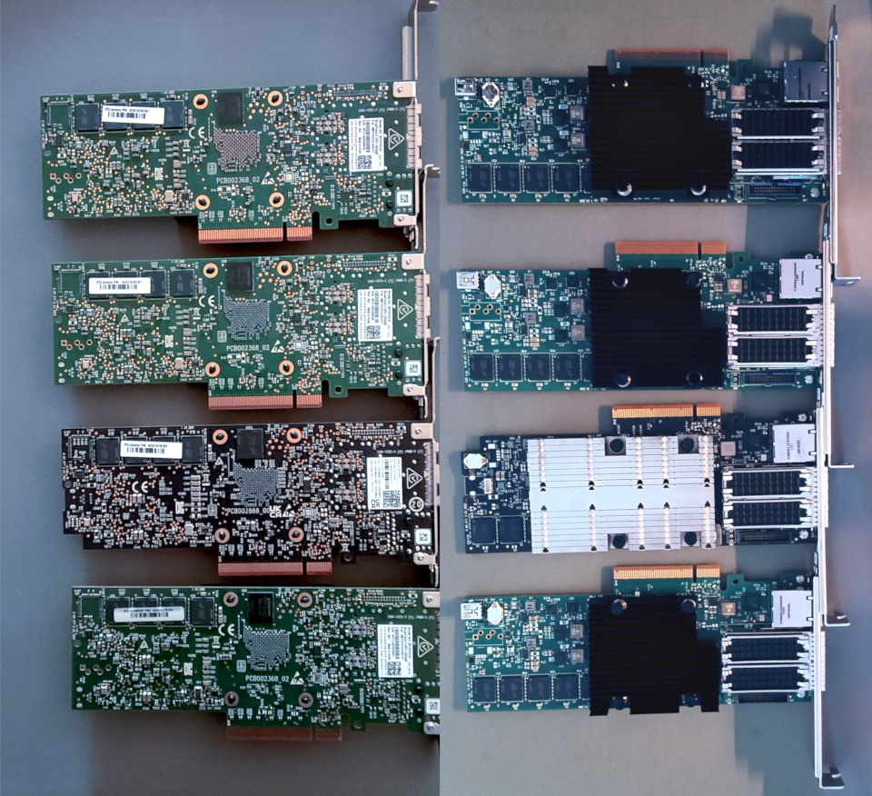 Well, for starters they don't look exactly like these old ConnectX-3 QDR Infiniband NICs but the DAC are similar. Mellanox changed their heatsink aesthetic along the way, and the heatsinks are far larger on the newer chipsets, with no less cooling required (~200+ LFM).